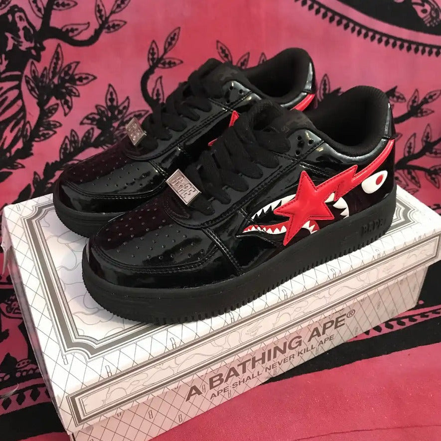 Stílusos és ikonikus sneaker, amely a streetwear divatot egy csipetnyi urbánus vagánysággal ötvözi. Prémium anyagokból készült, ezek a sneakerek elegáns fekete színvilággal és az oldalt elhelyezett jellegzetes Bape cápaarc motívummal rendelkeznek, ami merész és egyedi jelleget kölcsönöz öltözékednek. Alacsony szárú kialakításuknak és kényelmes illeszkedésüknek köszönhetően ezek a sneakerek tökéletesek a mindennapi viselethez, és könnyedén feldobják az utcai stílusodat. Lépj ki magabiztosan és tegyél egy kijelentést a Bapesta Low Black Shark Face sneakerekkel.