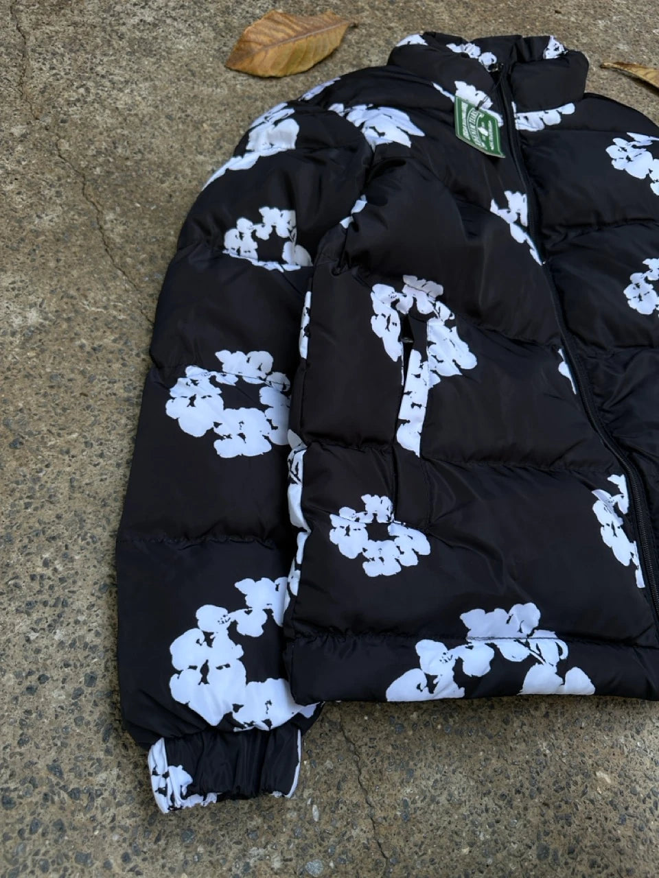 A Denim Tears virágmintás steppelt dzseki a streetwear stílus és az artisztikus dizájn tökéletes ötvözete. A kényelmes, szigetelt steppelt fazonú dzseki egészen virágmintás, és melegséget nyújt anélkül, hogy kompromisszumot kellene kötni a stílus terén. A részletekre való odafigyeléssel és prémium anyagokból készült dzseki ideális arra, hogy merész divatnyilatkozatot tegyen, miközben kényelmesen érzi magát a hűvösebb időben.
