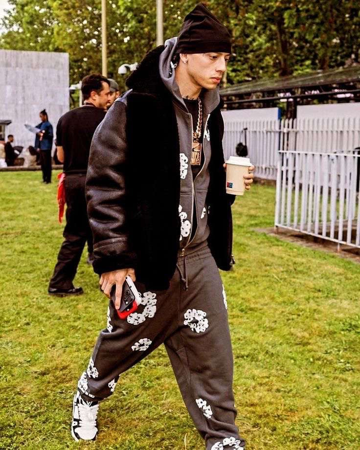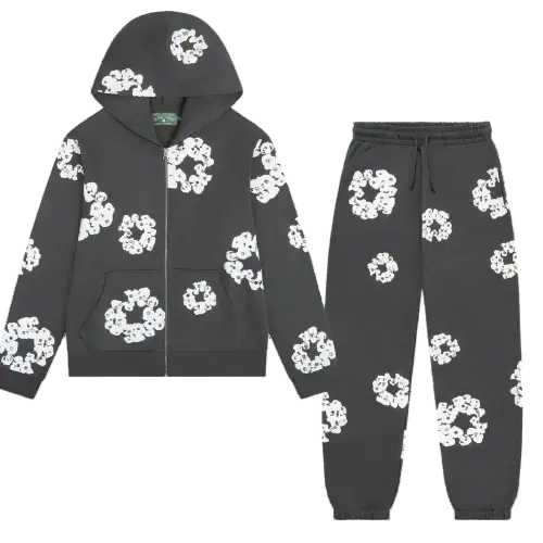 A Denim Tears Rhinestone Cotton Wreath Zip Hoodie Tracksuit egy merész és stílusos darab, amely zökkenőmentesen ötvözi a streetwear esztétikáját egy csipetnyi luxussal. Ezt a Denim Tears által tervezett melegítőt a kulturálisan releváns dizájnjairól ismerik, és a márka egyedi divatmegközelítésének kiemelkedő példája.