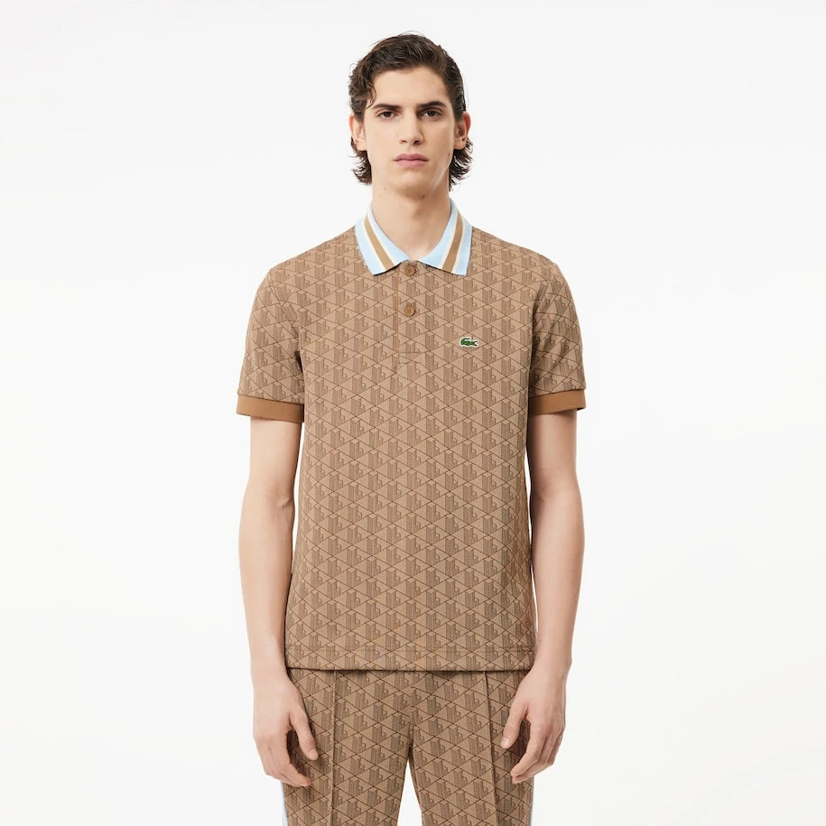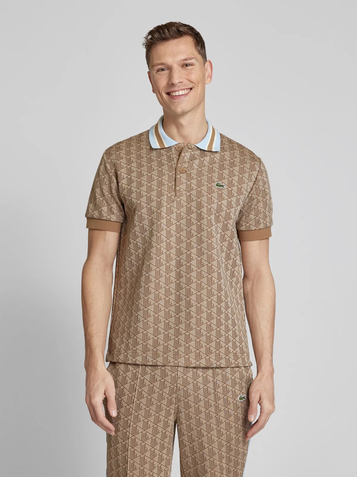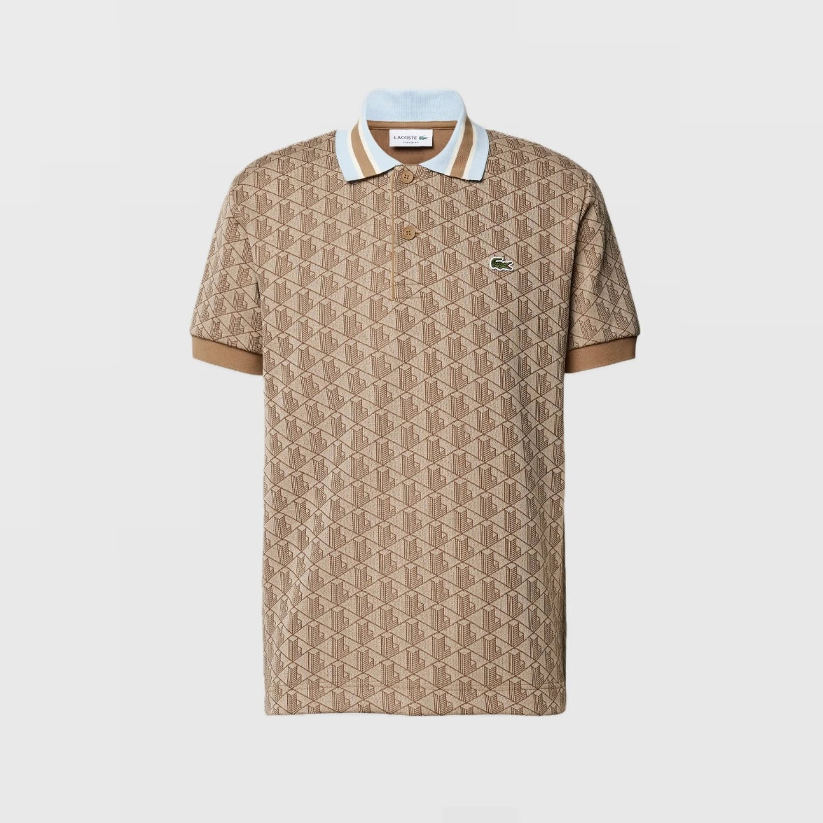 LACOSTE MONOGRAM CLASSIC FIT PÓLÓ GALLÉROS T-SHIRT - BÉZS/BARNA