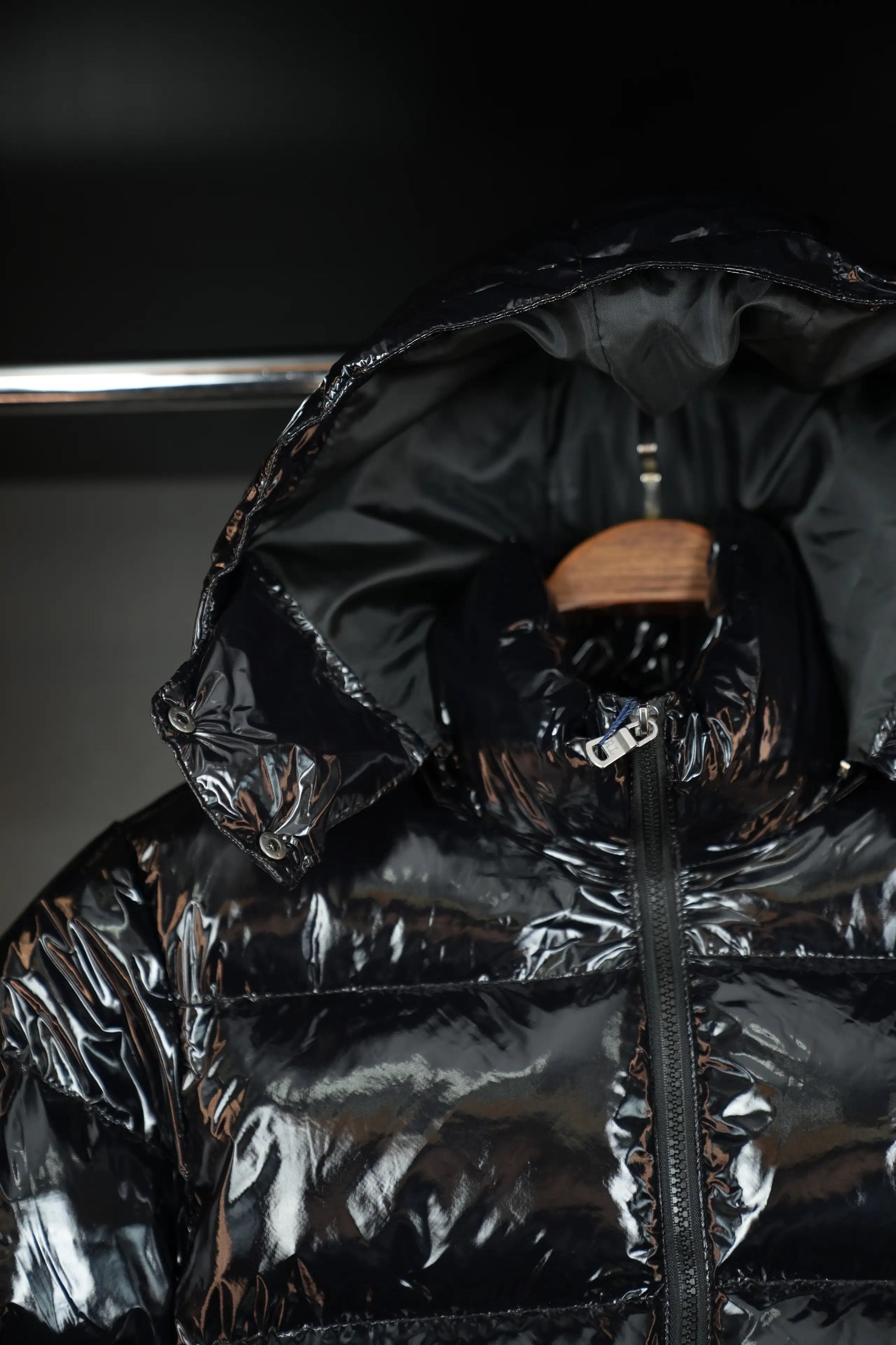 POLO RALPH LAUREN DETACHABLE HOOD HIGH SHINE DOWN PUFFER JACKET BLACK