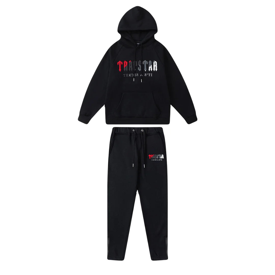 TRAPSTAR CHENILLE DECODED KAPUCNIS MELEGÍTŐ SZETT - FEKETE/PIROS