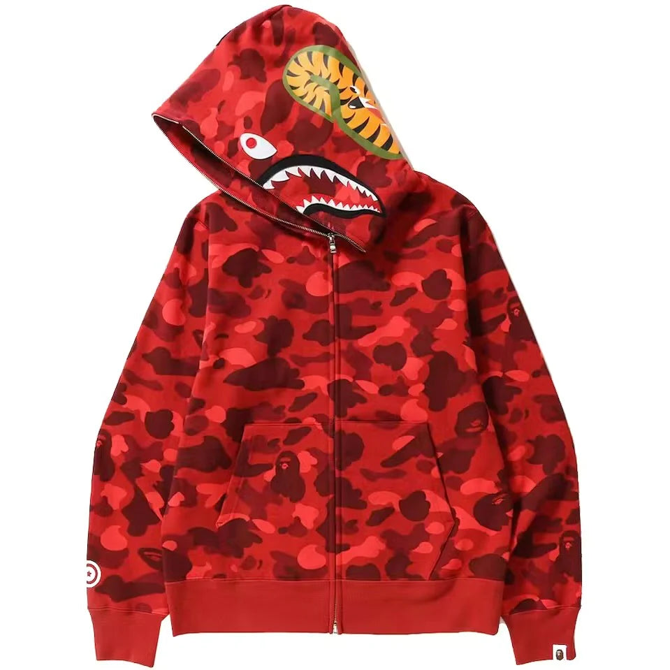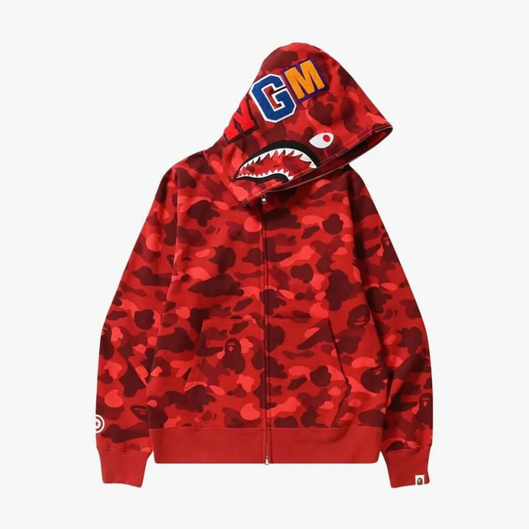 BAPE COLOR CAMO DETACHABLE SHARK FULL ZIP HOODIE RED