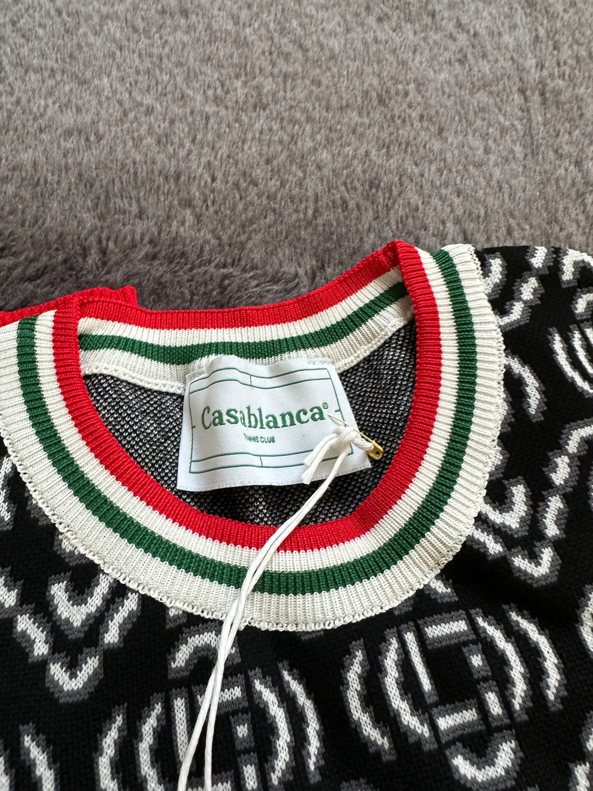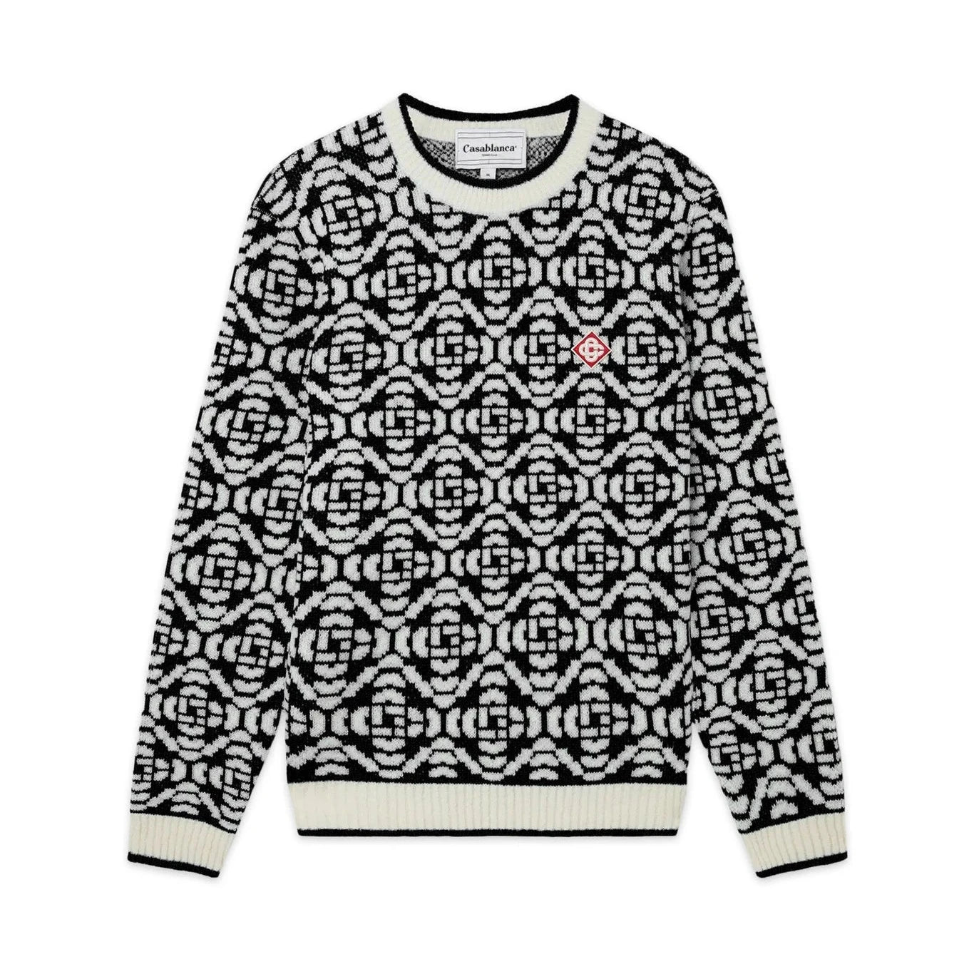 CASABLANCA MONOGRAM PATTEREND PREMIUM KNIT SWEATER - NIGHT BLACK/WHITE
