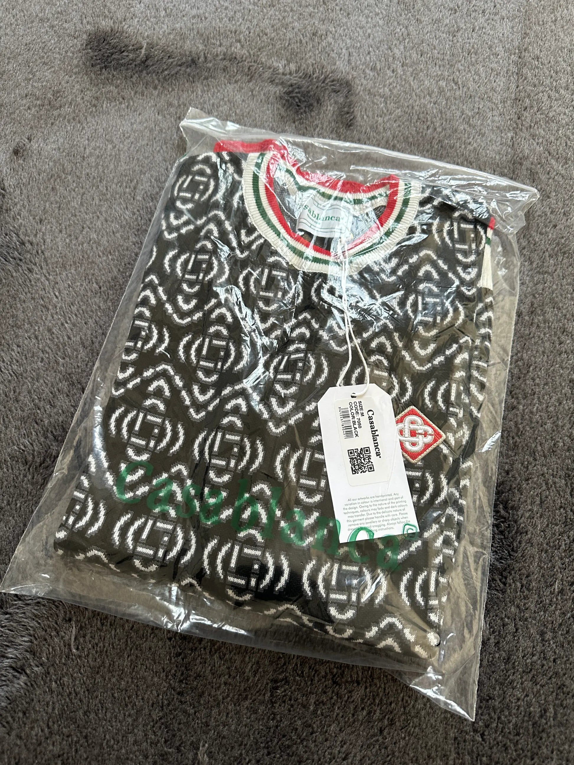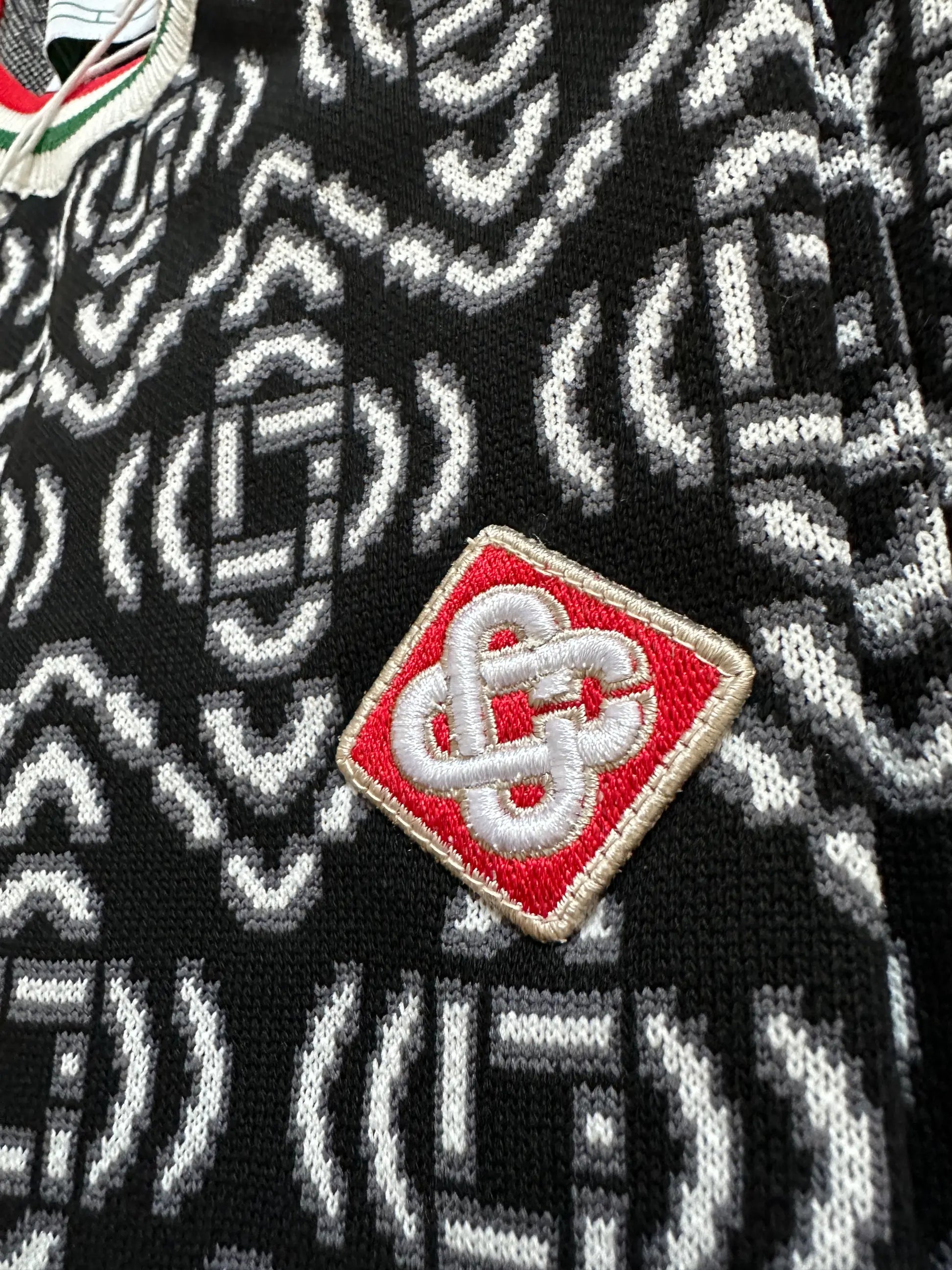 The CASABLANCA MONOGRAM PATTERNED PREMIUM KNIT SWEATER in Night Black/White is a sophisticated blend of luxury and contemporary style, designed for the fashion-forward individual. This sweater showcases Casablanca's unique approach to knitwear, combining elegance with a bold aesthetic.