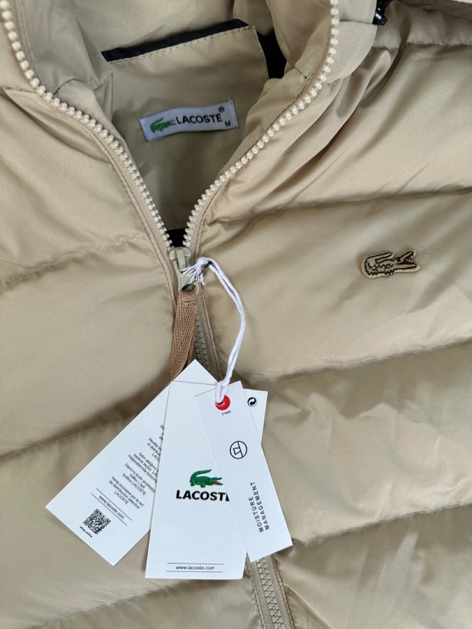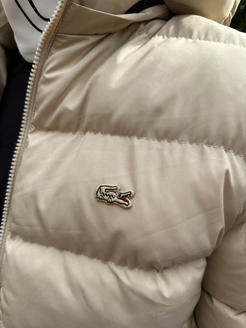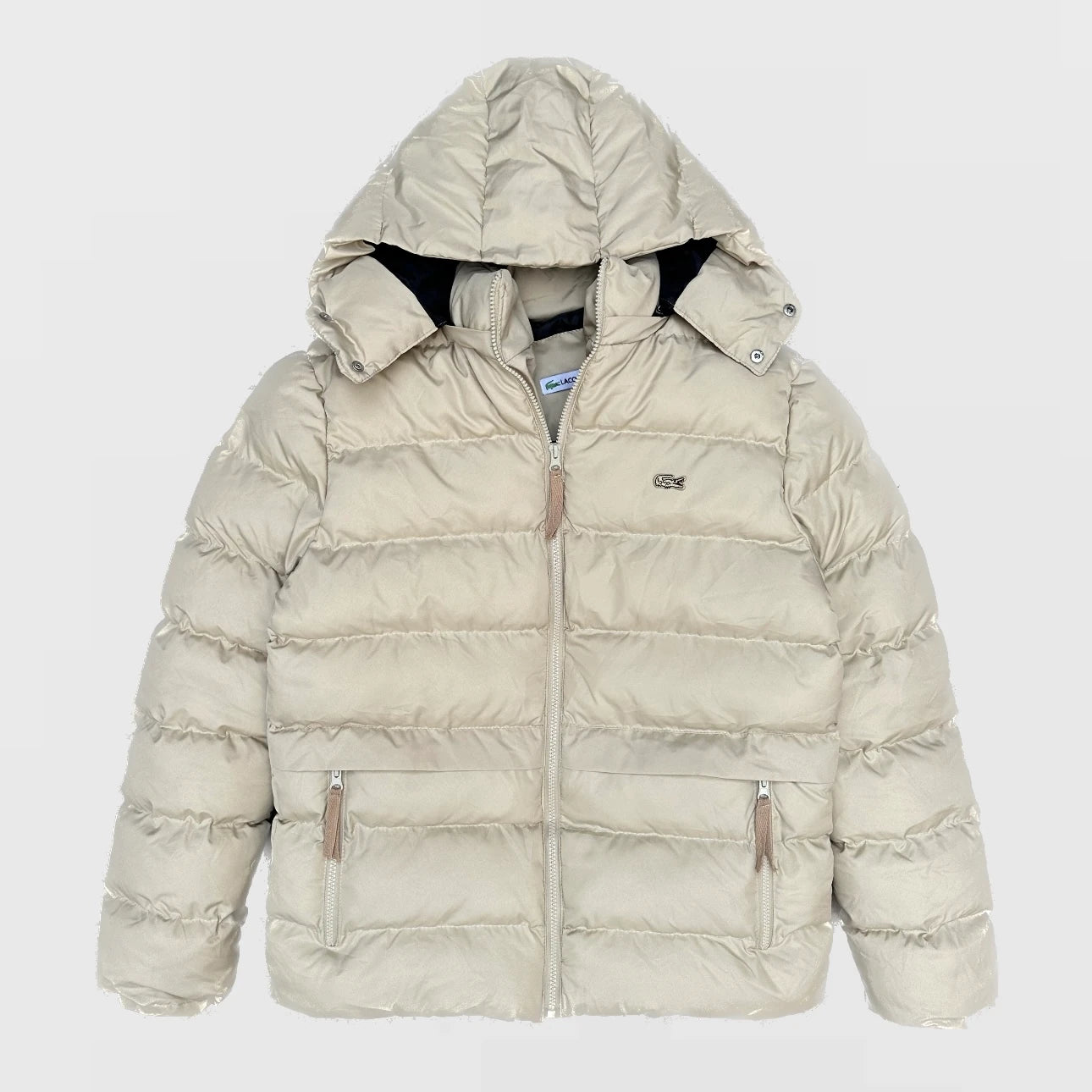 LACOSTE DETACHABLE HOODED PUFFER JACKET - ECRU