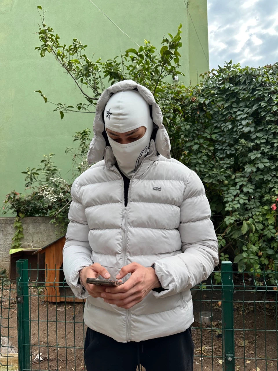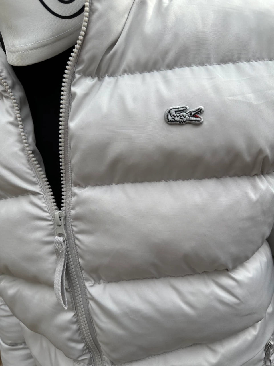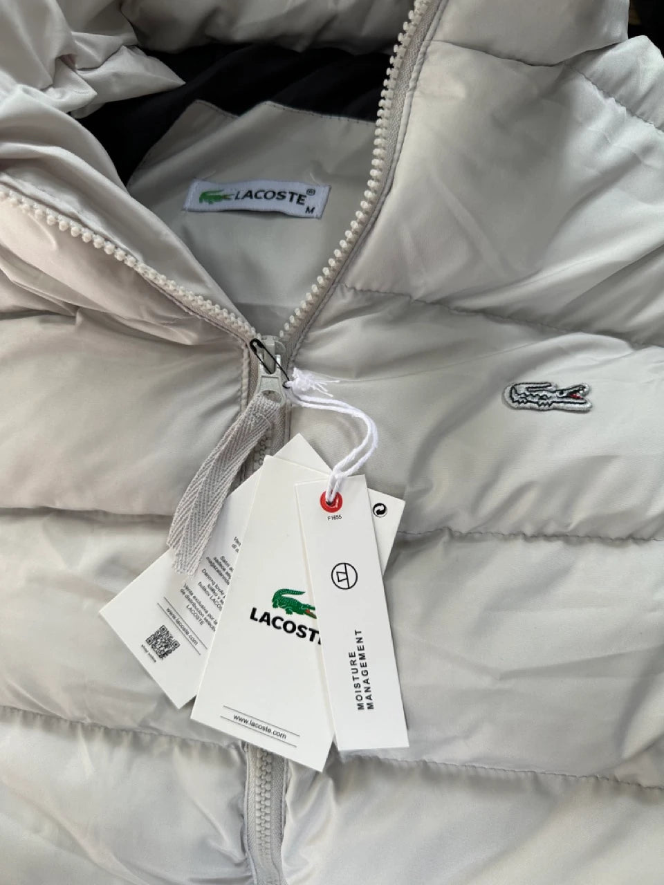 LACOSTE DETACHABLE HOODED PUFFER JACKET - ICE GREY