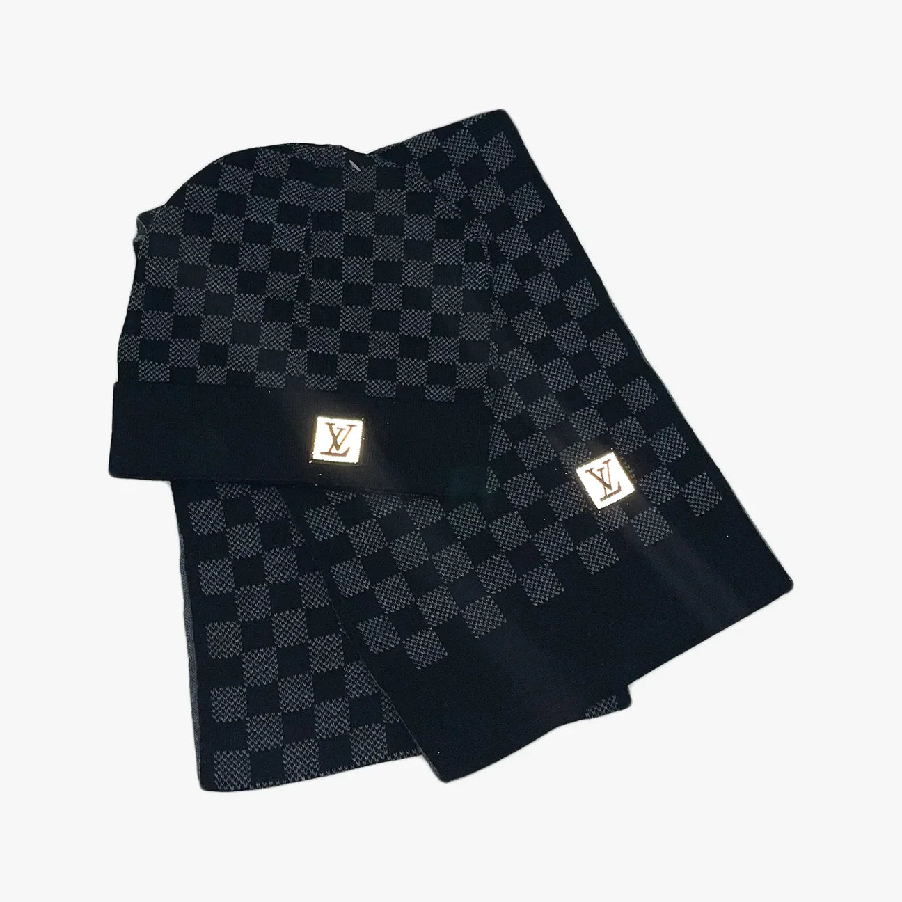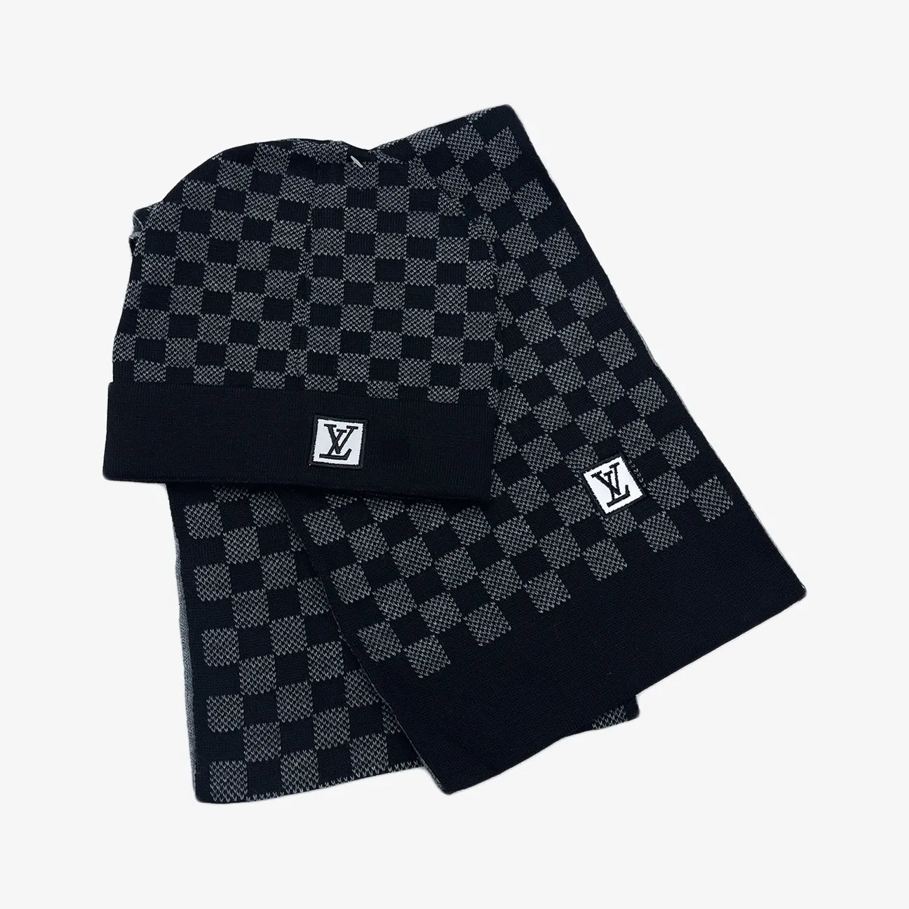LOUIS VUTTON NÉO PETIT DAMIER BLACK BEANIE & SCARF