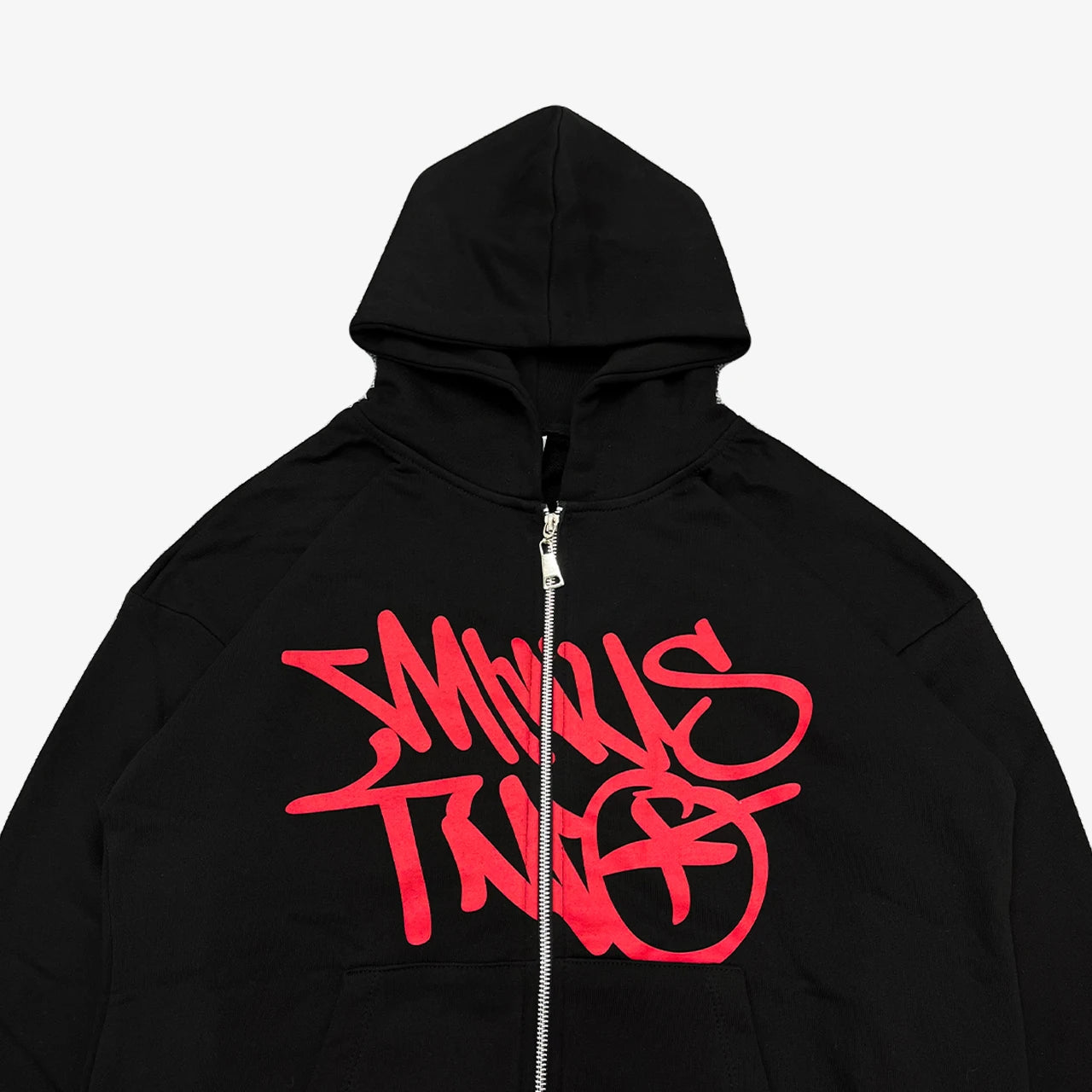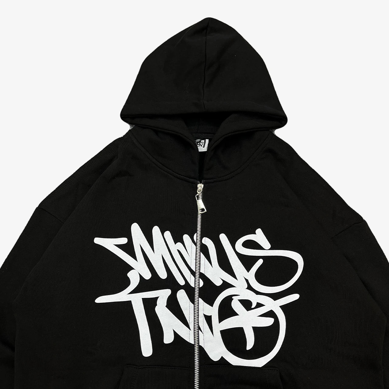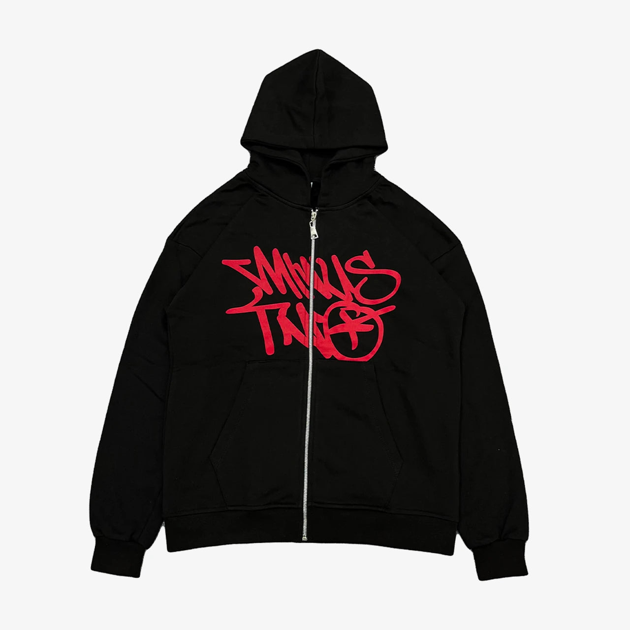 Made of lightweight and soft, 100% cotton 3-thread fabric that provides comfort all day long. The iconic "Minus Two" print is on the chest. This model, which has a full-length metal zipper, offers practical use thanks to its hood and front pocket, and provides functionality in cold weather. Our products are 1:1 replicas of the original.