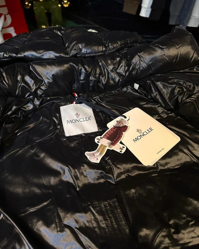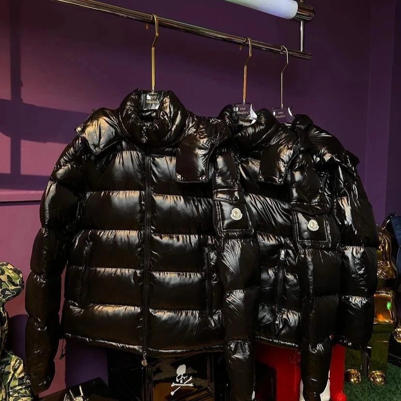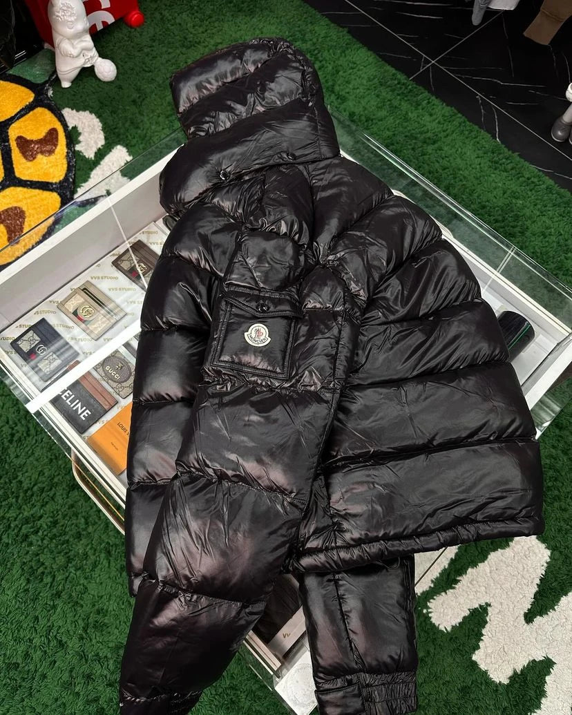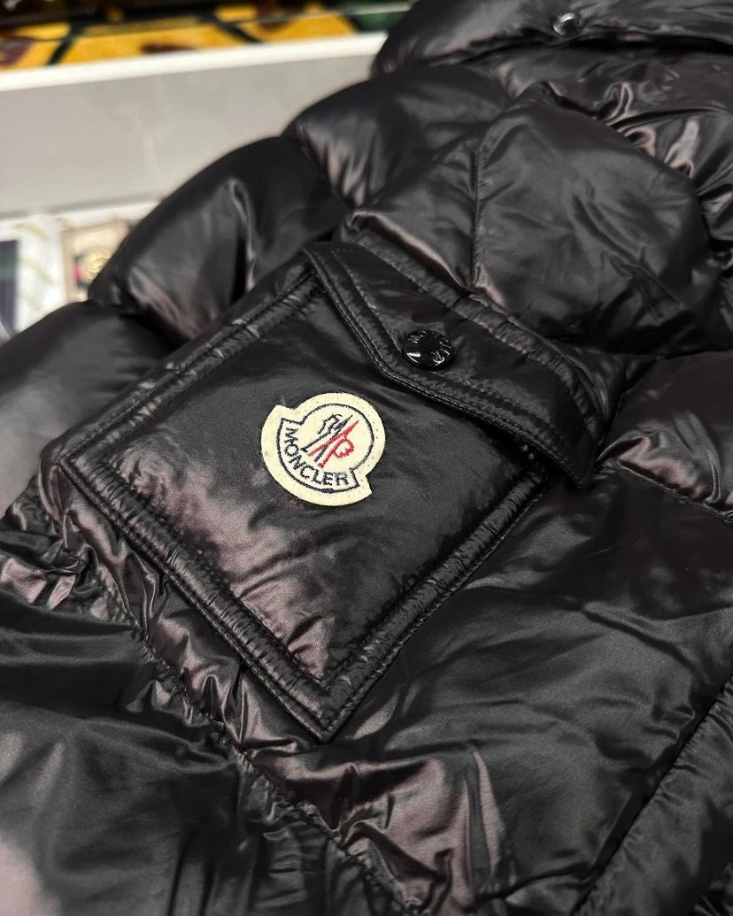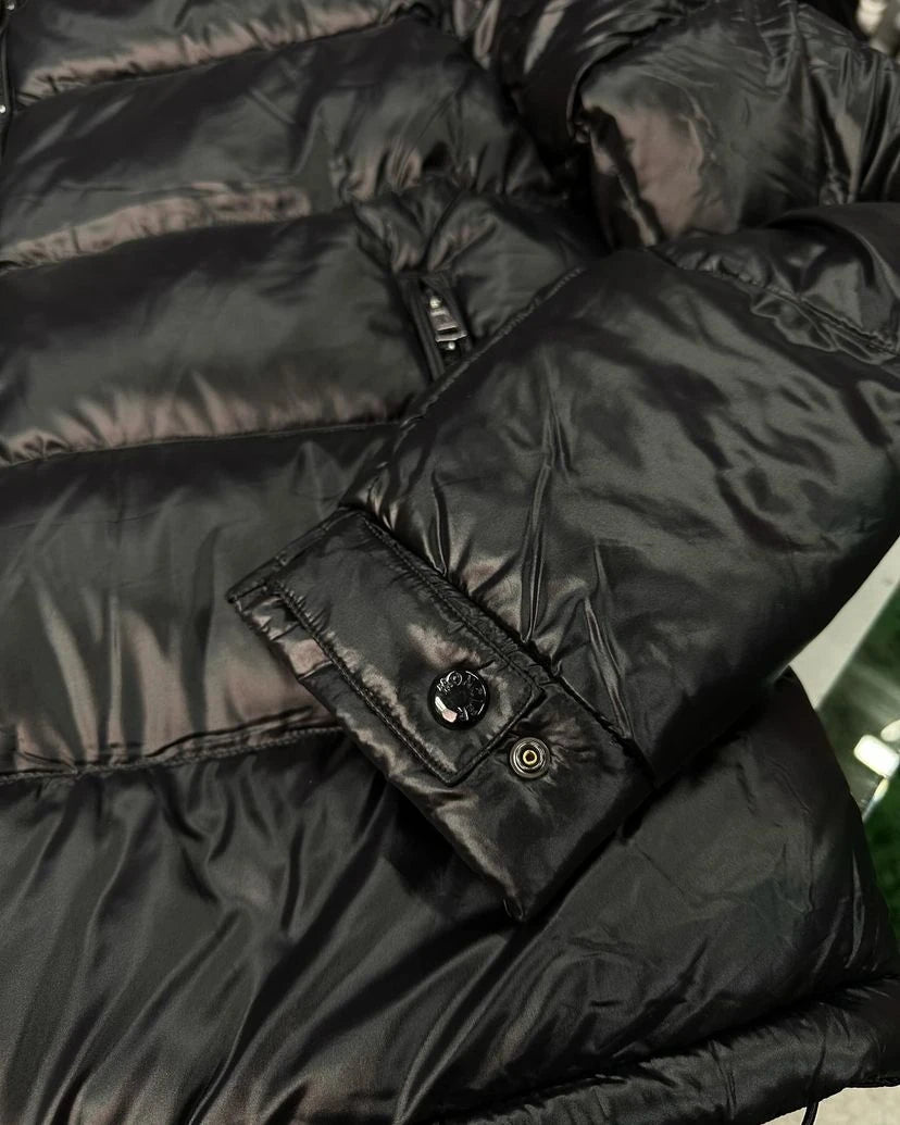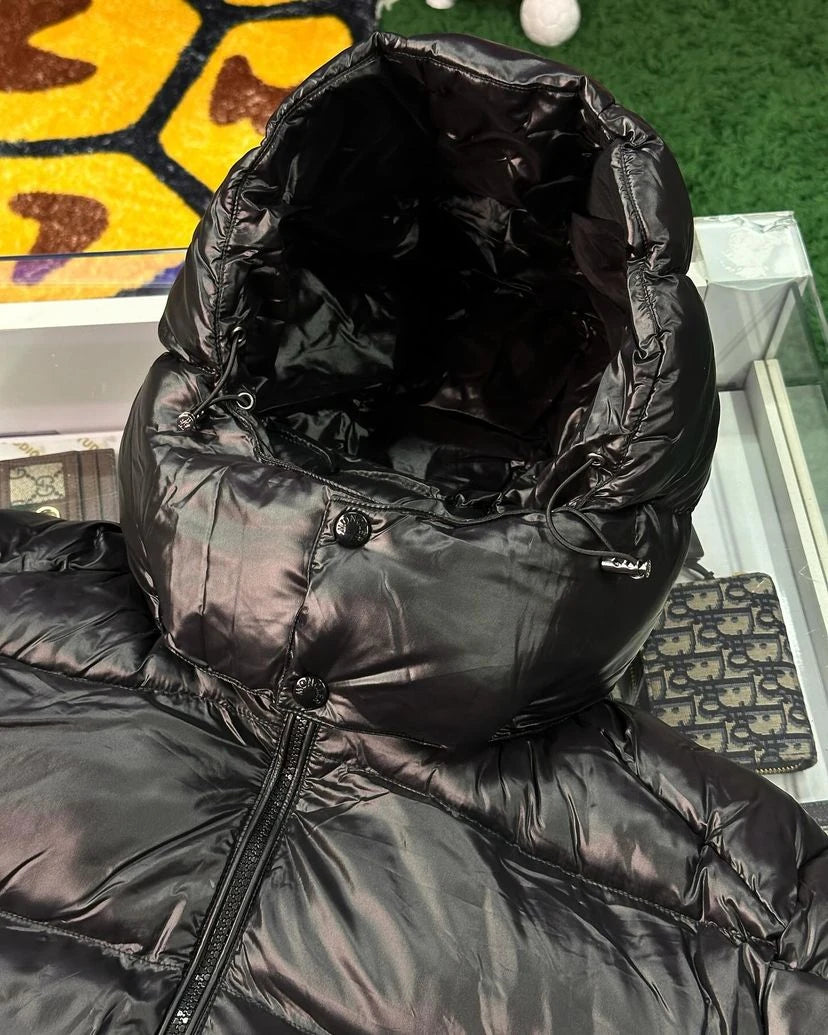 MONCLER MAYA HOODED SHINY PUFFER JACKET - BLACK
