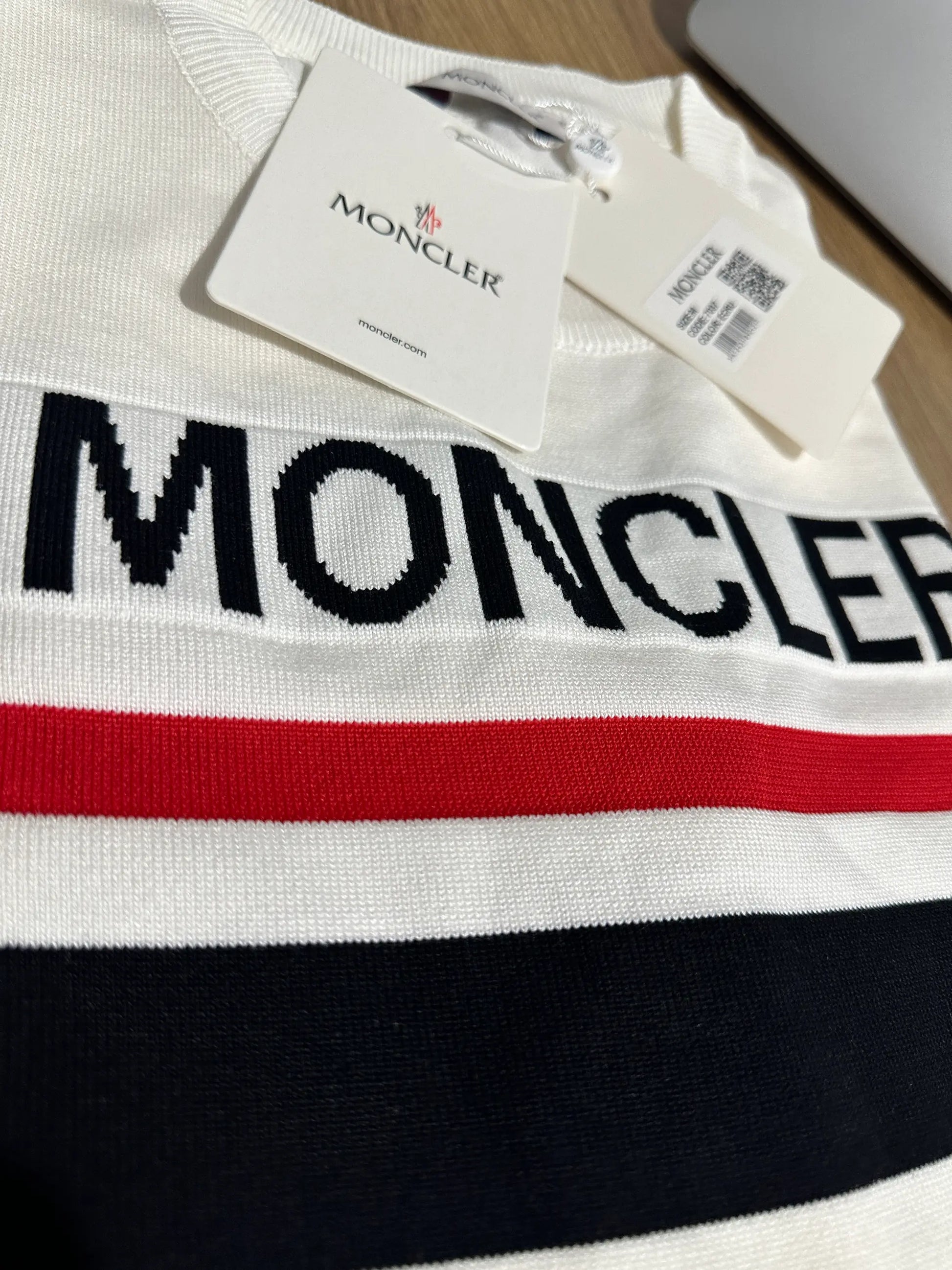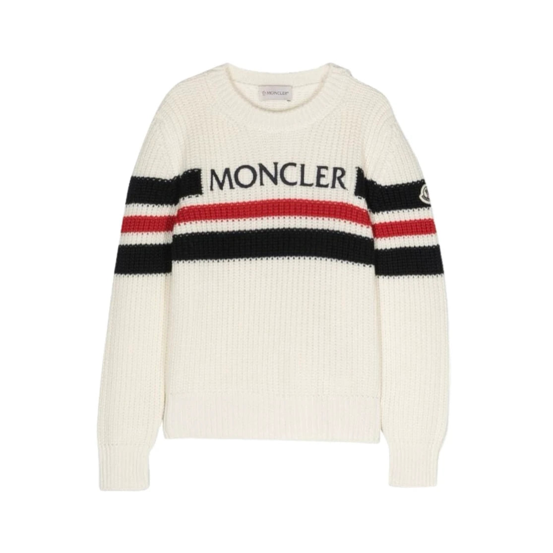 MONCLER PREMIUM KNIT SWEATER WITH CHEST LOGO - WHITE