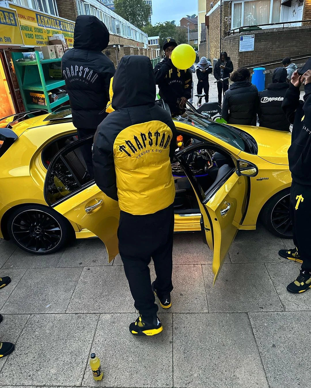 TRAPSTAR DECODED ARCH PUFFER JACKET - BLACK/YELLOW